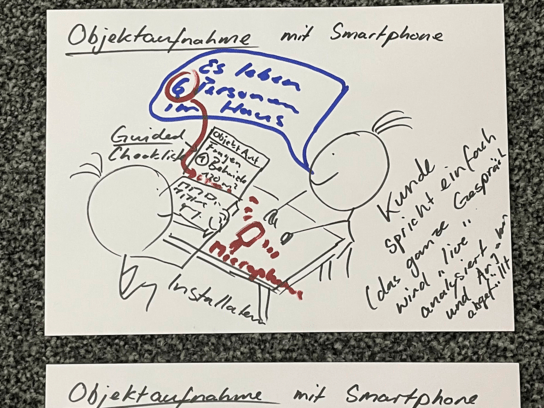 Zentraler Bestandteil der Entwicklung war ein interaktiver Prototyp, der iterativ erarbeitet wurde. Das Design orientierte sich dabei bewusst an den Arbeitsgewohnheiten der Zielgruppe: Viele Partner arbeiten eher traditionell – mit Stift und Papier – und nutzen digitale Geräte im Kundengespräch nur zurückhaltend. Entsprechend wurde die Benutzeroberfläche besonders intuitiv gestaltet, mit einem klar geführten Prozess und einer minimalen Anzahl an Klicks.
